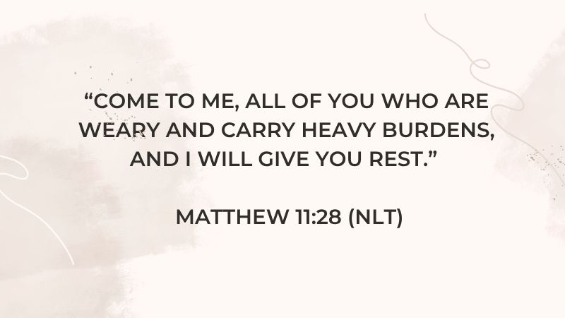 “Come to me, all of you who are weary and carry heavy burdens, and I will give you rest.” – Matthew 11:28 (NLT)